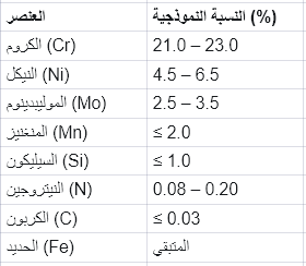 يتميز هذا النوع بتوازن استثنائي بين القوة العالية ومقاومة التآكل والتكلفة المعقولة، مما يجعله مادة مفضلة في صناعات النفط والغاز والمعالجة الكيميائية وتحلية المياه والهندسة البحرية.