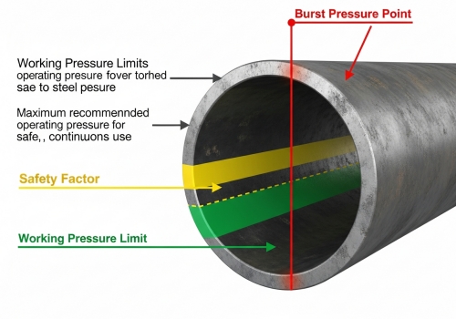 إن الخلط بين حد التشغيل الآمن وحد الفشل (الانهيار) هو السبب الأكثر شيوعاً لفشل النظام الكارثي في صناعتنا. ضغط التشغيل هو أقصى قوة يمكن للأنبوب التعامل معها يومياً، بينما ضغط الانفجار هو النقطة التي ينكسر فيها المعدن فعلياً. من أجل تصنيف ضغط أنابيب الفولاذ المقاوم للصدأ بشكل آمن، تتطلب معايير الصناعة عادةً أن يكون ضغط الانفجار أعلى بأربع مرات من ضغط التشغيل. لقد رأيت العديد من المهندسين الشباب يرتكبون خطأً بسيطاً. ينظرون إلى نتائج اختبار الأنبوب ويرون رقماً مرتفعاً. يعتقدون، "رائع، هذا الأنبوب يمكنه تحمل 10,000 رطل/بوصة مربعة (PSI)." لكن ذلك كان ضغط الانفجار، وليس ضغط التشغيل. خلال سنوات عملي في شركة Centerway Steel، تعلمت أن السلامة تكمن في الهوامش. "ضغط التشغيل" هو منطقتك الآمنة. هذا هو الضغط الذي يتعرض له الأنبوب أثناء التشغيل العادي. أما "ضغط الانفجار" فهو الحد المطلق. عند هذه النقطة، تفشل قوة الشد للمادة، ويتمزق الأنبوب. نحن نتبع قاعدة صارمة لأنابيب الأجهزة الدقيقة (instrumentation tubing). يجب أن يكون ضغط الانفجار 4 أضعاف ضغط التشغيل على الأقل. تأخذ نسبة 4:1 هذه في الاعتبار ارتفاعات الضغط المفاجئة، والاهتزازات، وإجهاد المواد بمرور الوقت. (أدخل قصة شخصية هنا عن وقت تجاهل فيه عميل هامش الأمان وواجه تسريباً أثناء الاختبار). إليك تفصيل بسيط للعلاقة بينهما: