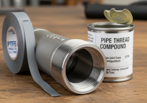 El uso de cinta blanca estándar a menudo conduce al fracaso. Necesita las herramientas adecuadas para el trabajo. ¿Qué debe haber exactamente en su caja de herramientas? Necesita cinta de PTFE de alta densidad pigmentada con níquel (a menudo gris) y un compuesto para roscas de tubería anti-gripante. La cinta de níquel previene el gripado, mientras que el compuesto actúa como un sello secundario. Este es el mejor método sobre cómo sellar roscas de tuberías de acero inoxidable.