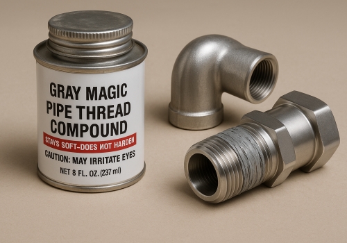 For the most reliable seal, use both PTFE tape and Gray Magic Thread Compound together. This dual approach is especially necessary for larger diameter pipes (4" and up) to prevent leaks comprehensively.